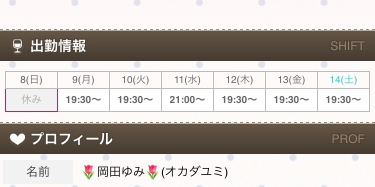 14日土曜日シフト19:30〜に