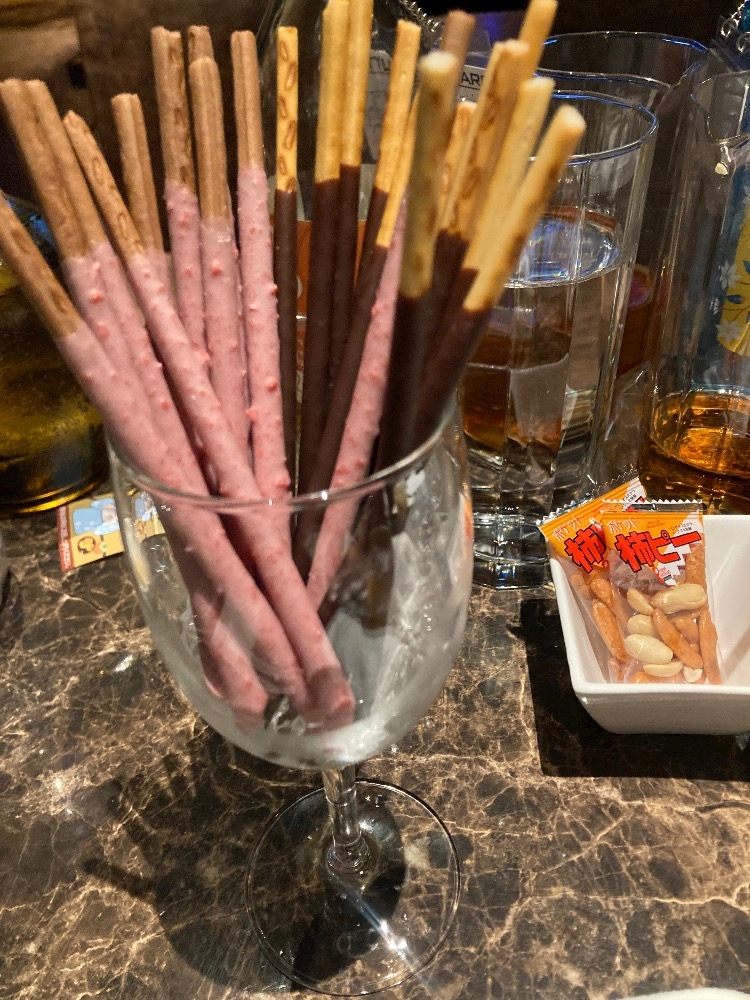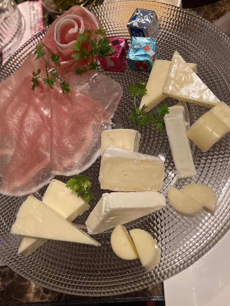 チーズと生ハム盛り合わせ、ポッキーも