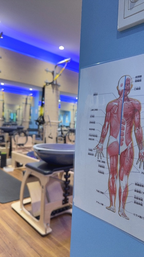 Cピラティスはバランスドボディのリフォーマーやチェア、壁のバネつけるやつ。TRXなどありすごく機材充実してる。