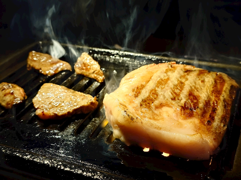 店員さんが大きいステーキ🥩カットしてくれた✂️