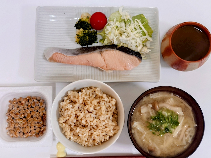 夕方【味噌汁、鮭(たまに野菜あり)、納豆(たまに)、ご飯】