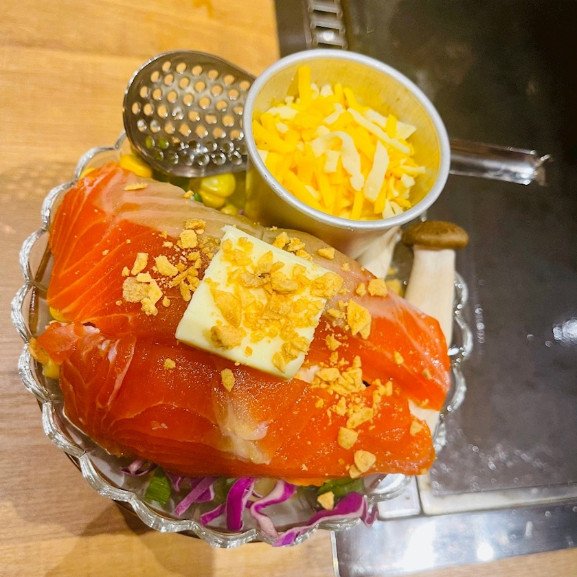 サーモンとチーズの味噌バターもんじゃ
