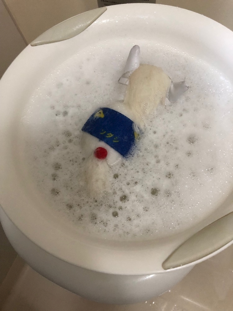 ソダシちゃんをお風呂に入れました🐎🤍