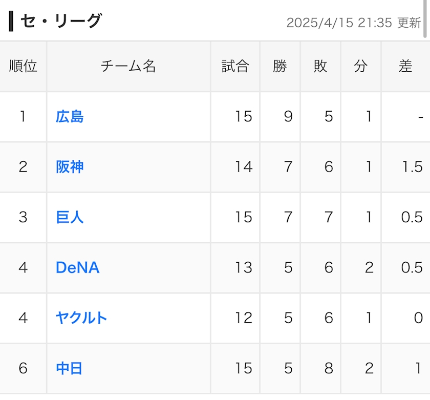 巨人5位に転落してたけど