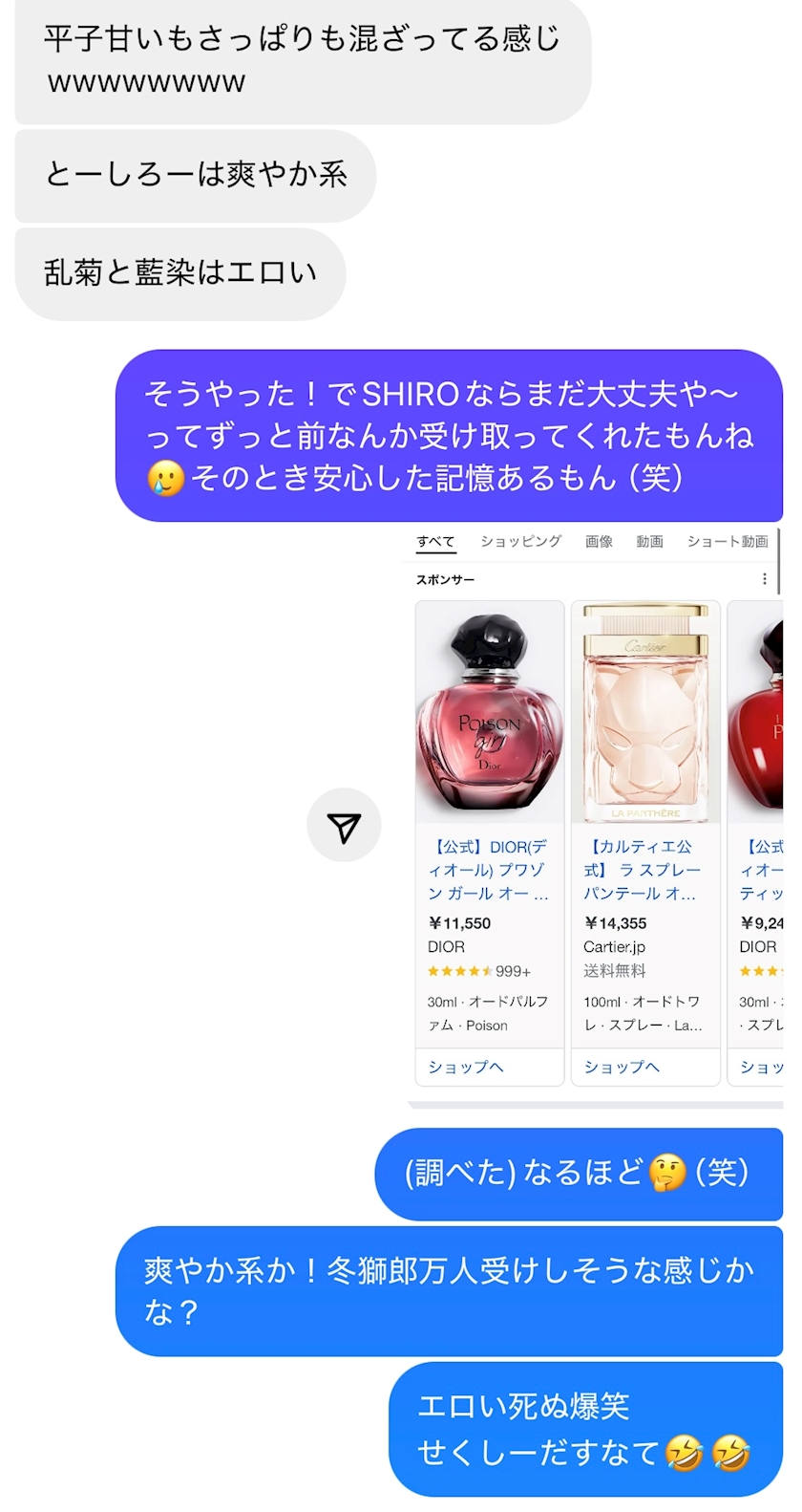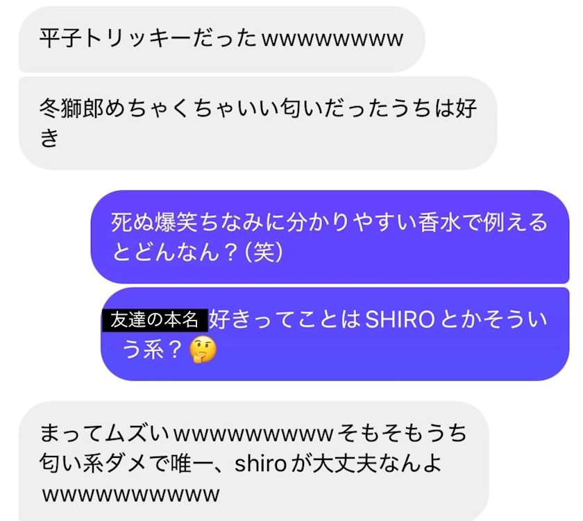 アニメのキャラの香水あるよ!って連絡くれたから感想聞こうって思ってしっかり感想聞いたら