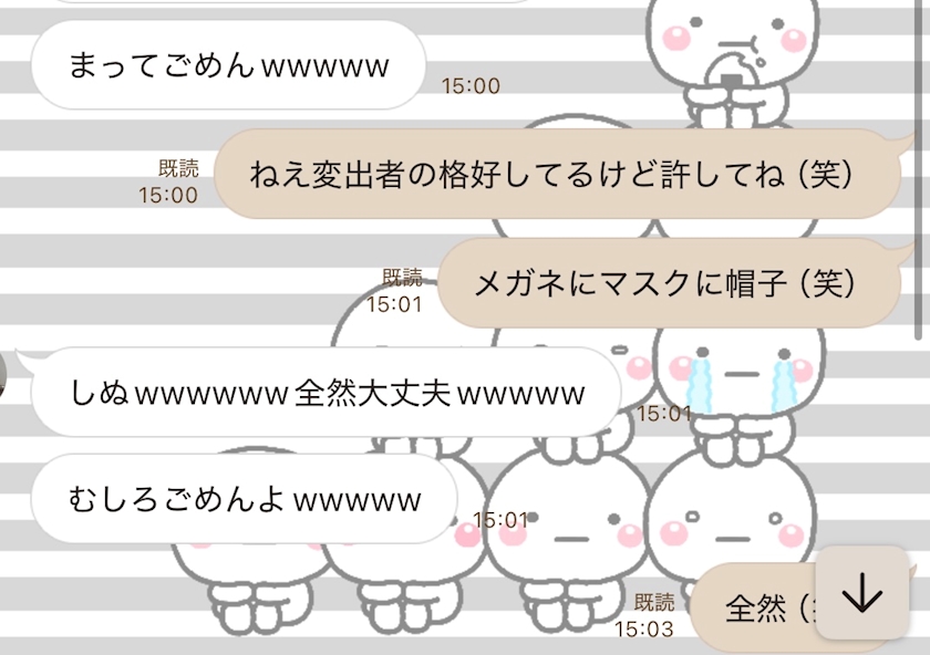 まじ変質者の格好してて会った瞬間爆笑された(笑)