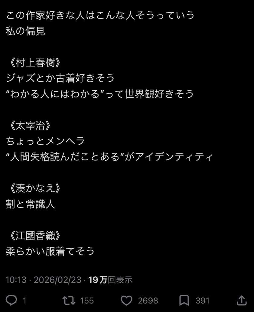 私の好きな作家はどんな偏見で見られているのだろうか