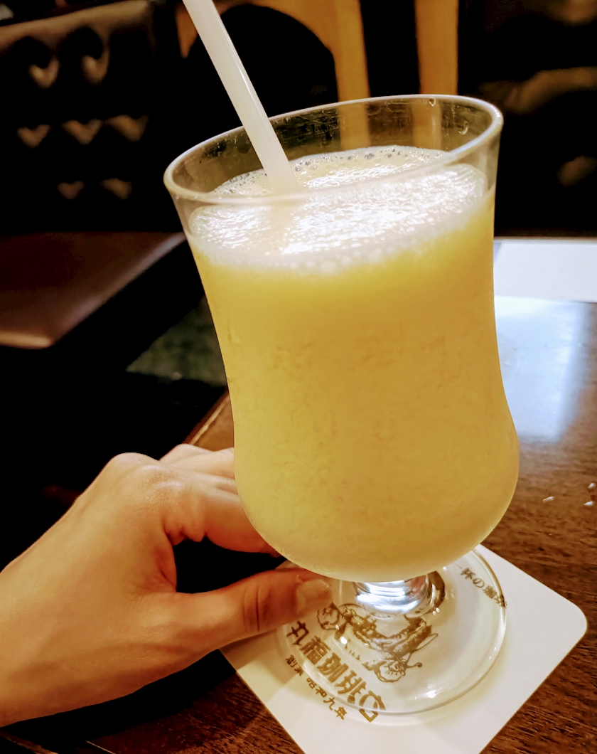 フルーツたっぷり、冷たいミックスジュースが