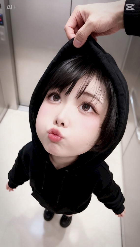 フードかぶって上から撮るやつ😊