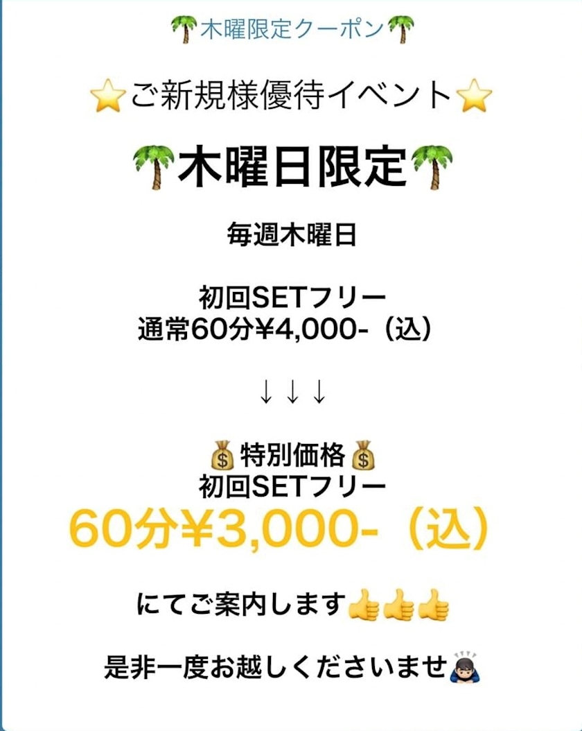🌸木曜日ご新規様優待イベント🌸