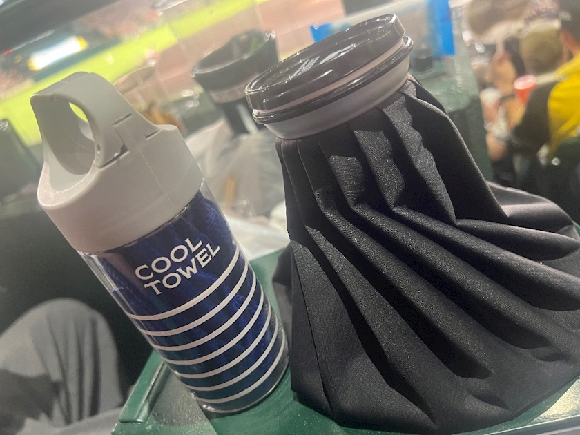 お客様が冷えたおしぼりに氷嚢用意してくれてて