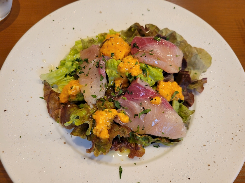 前菜のハマチのサラダも美味しい~😋