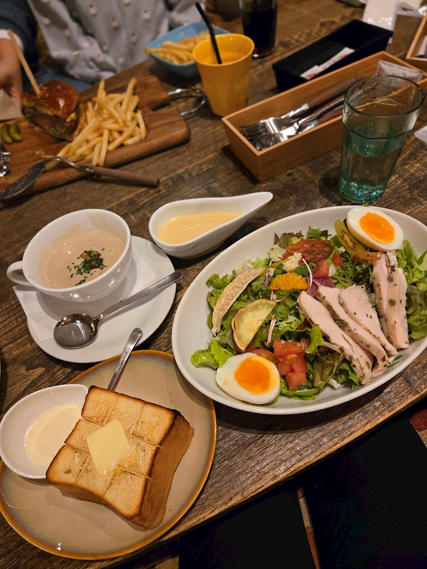 スープとトーストもついてボリューム満点😂🍞