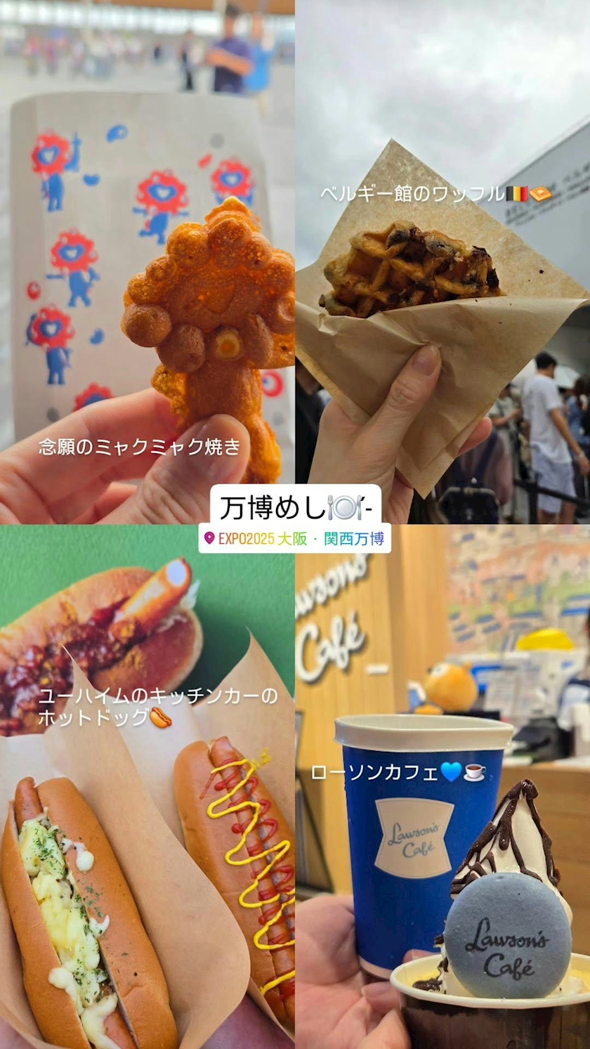 ミャクミャク焼きとワッフルを食しました〜!