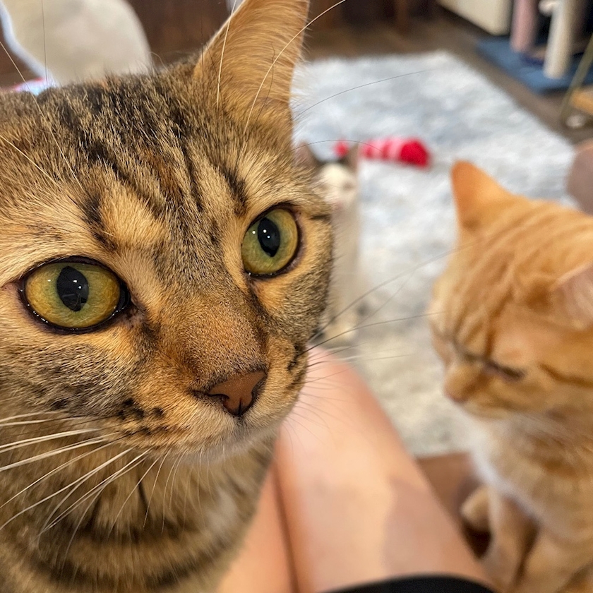 おやつを狙うにゃんこ達に