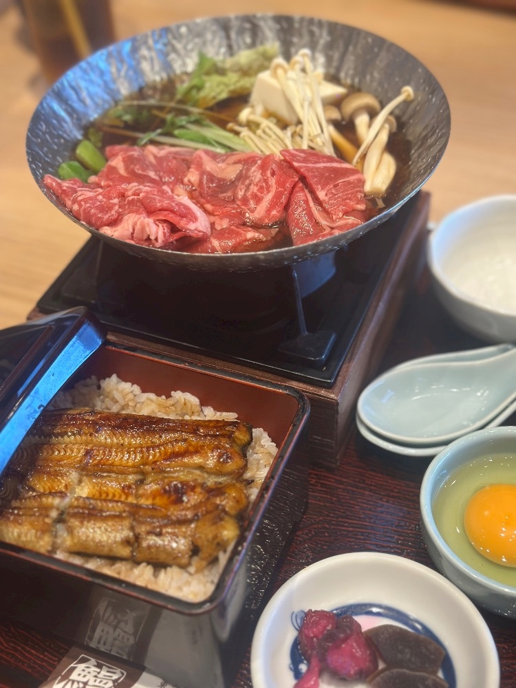 和牛すき焼きと鰻の