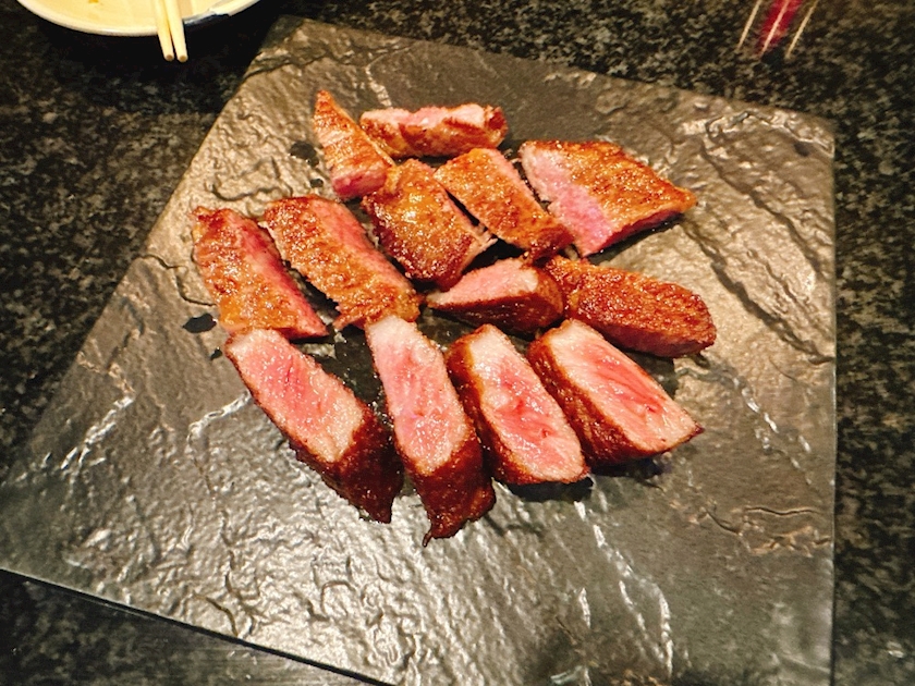 ステーキとシャンパンっていう贅沢な組み合わせ🥂