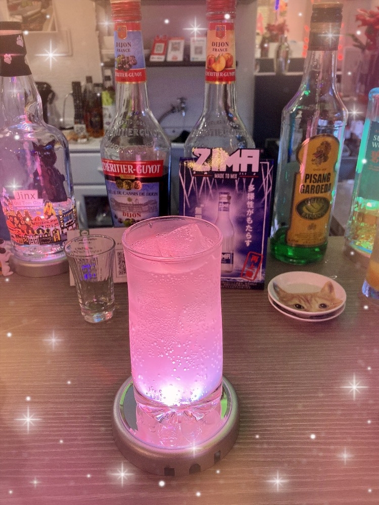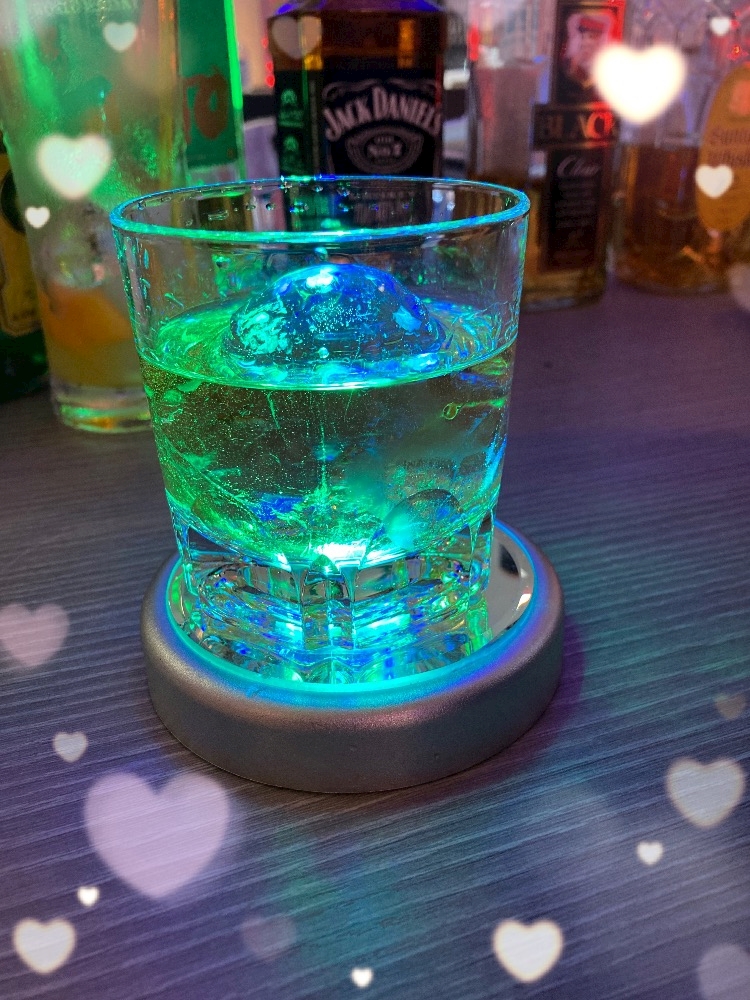 コースターがライトで光っててお酒がこんなに綺麗に…