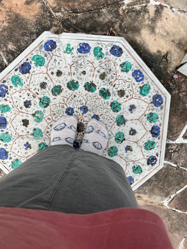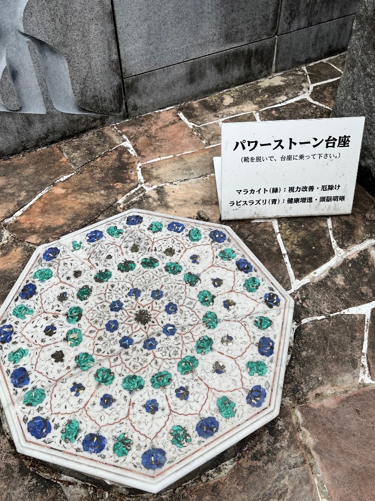 ラピスラズリなどでできた台座が