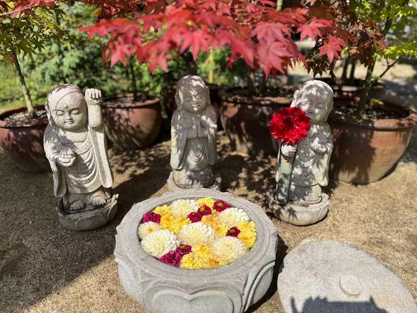 お花でおめかしされたお地蔵さんも