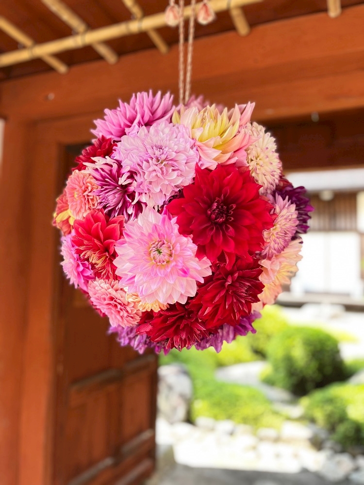 手毬のようなお花がかざられてて