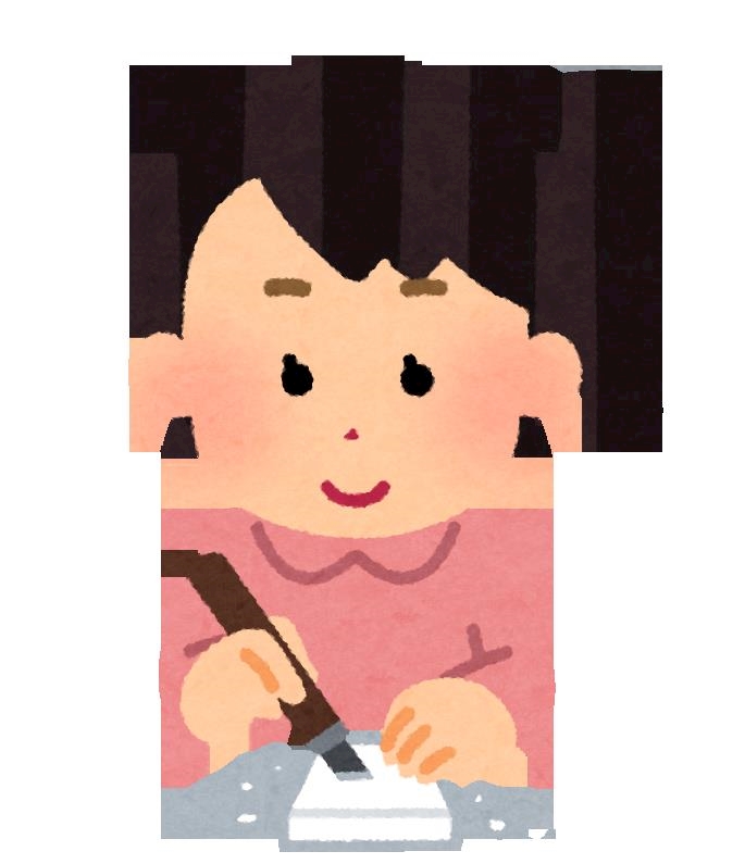 大きな消しゴム渡されて絵を写してカッターでひたすら切る✂️