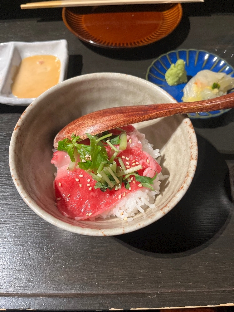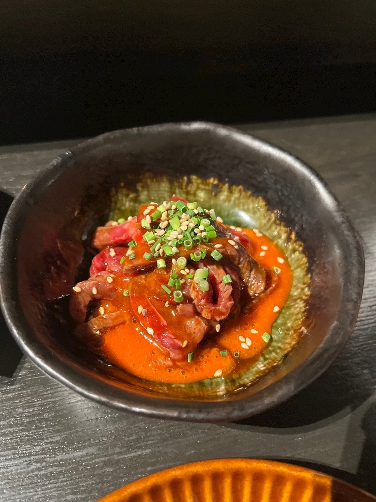 炙りユッケの突き出しに始まり