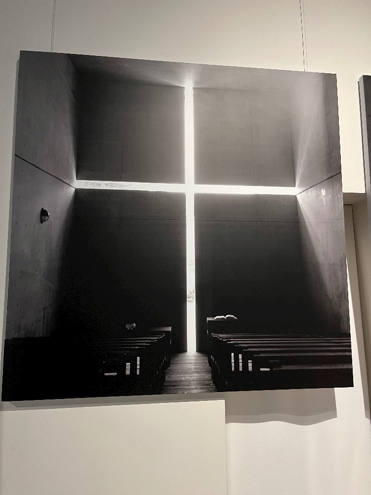 今まで安藤さんが携わってきた建築物の写真が飾られていました