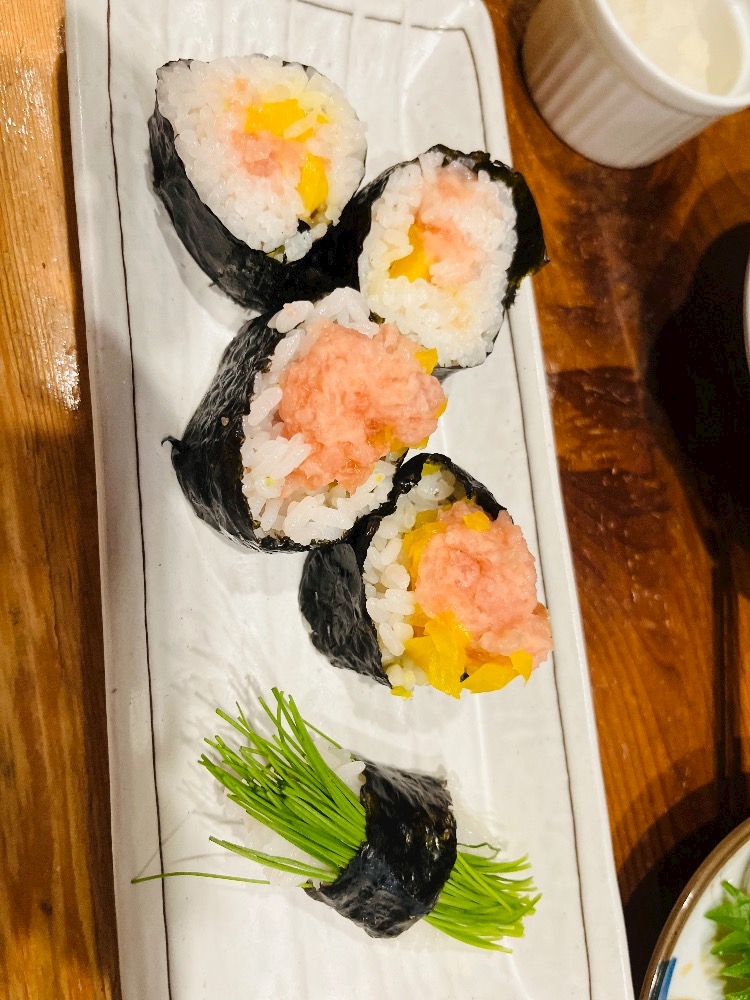 〆はトロタク巻きと芽ネギのお寿司