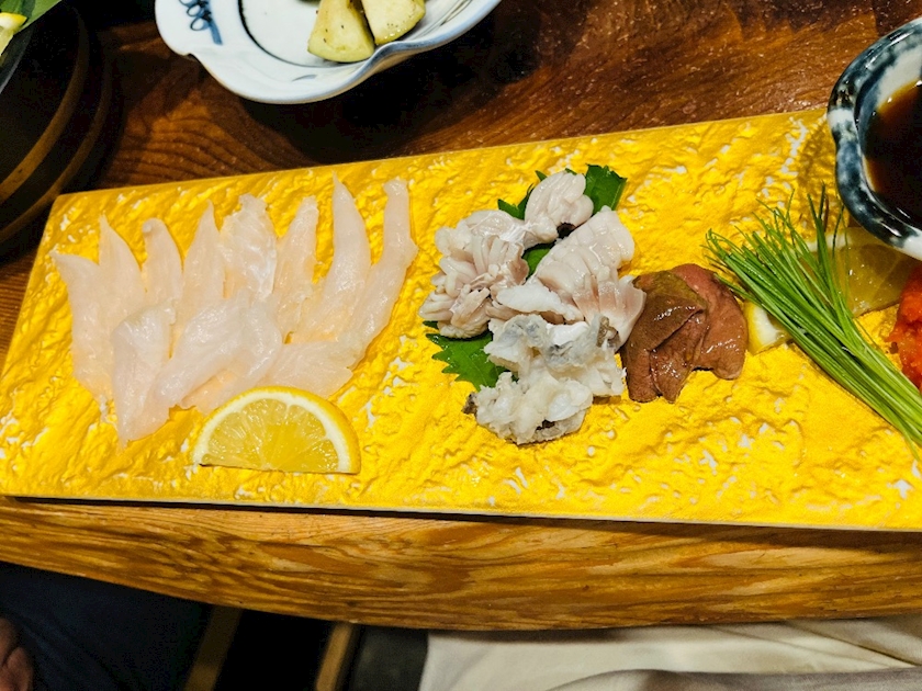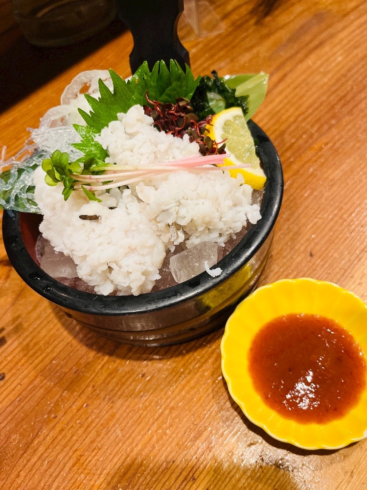 カワハギのお刺身は淡白で食べやすくてd(≧▽≦*)