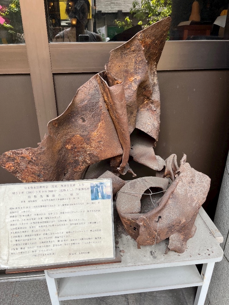 昔むかしの戦争の時に落ちた飛行機の尾翼部が寄贈されてました