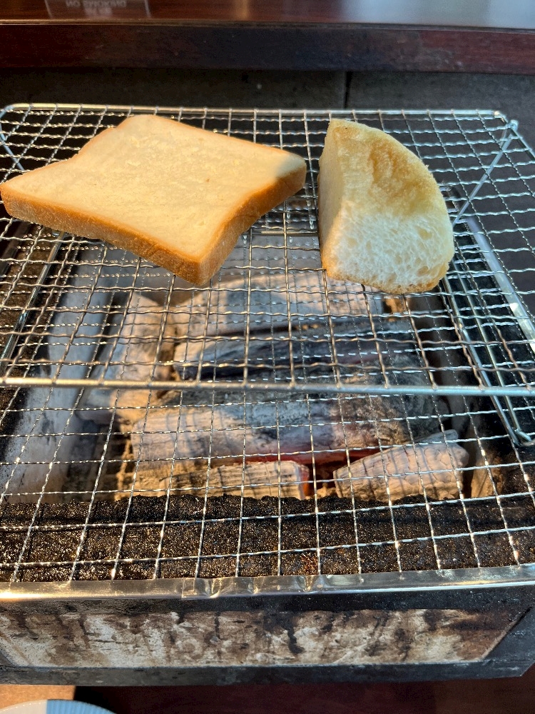 パンは自分で炭火でじっくり焼いて