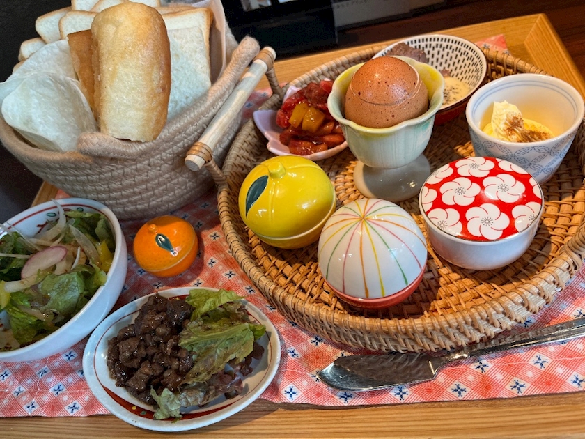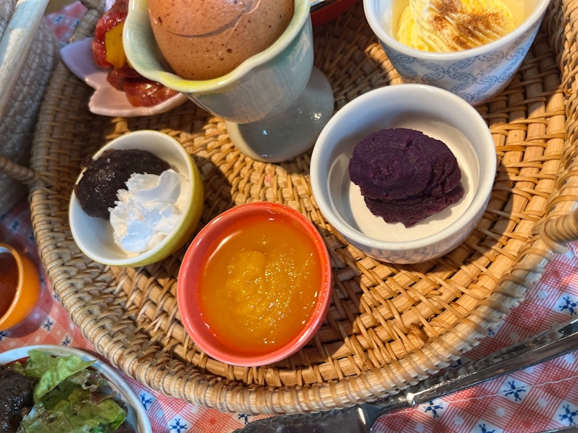 蘭王のゆで卵とパンにつけるシナモンバターやパンプキンスプレッド🎃