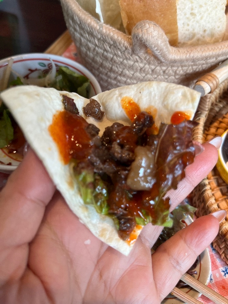 トルティーヤにお肉乗せて〜♬*°