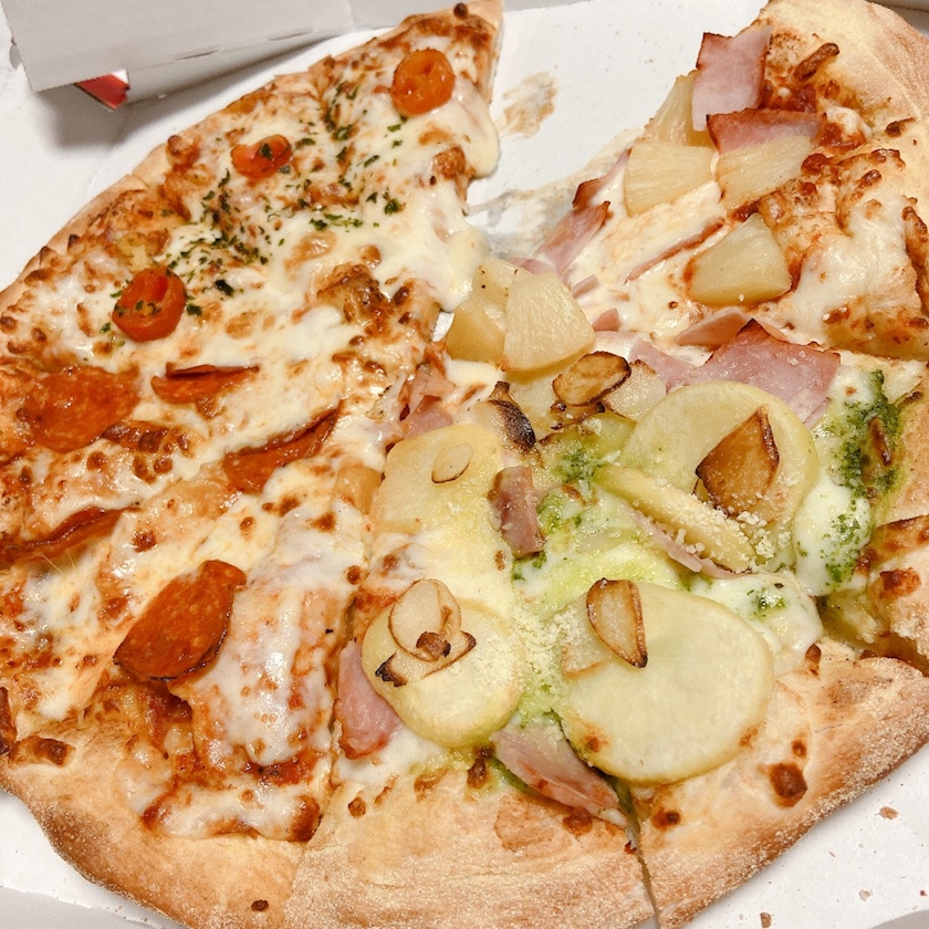 夜ご飯ピザ食べて