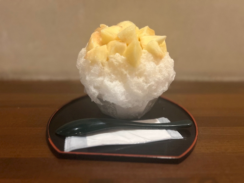 桃と生姜のかき氷なんだけど美味しすぎた🍑✨
