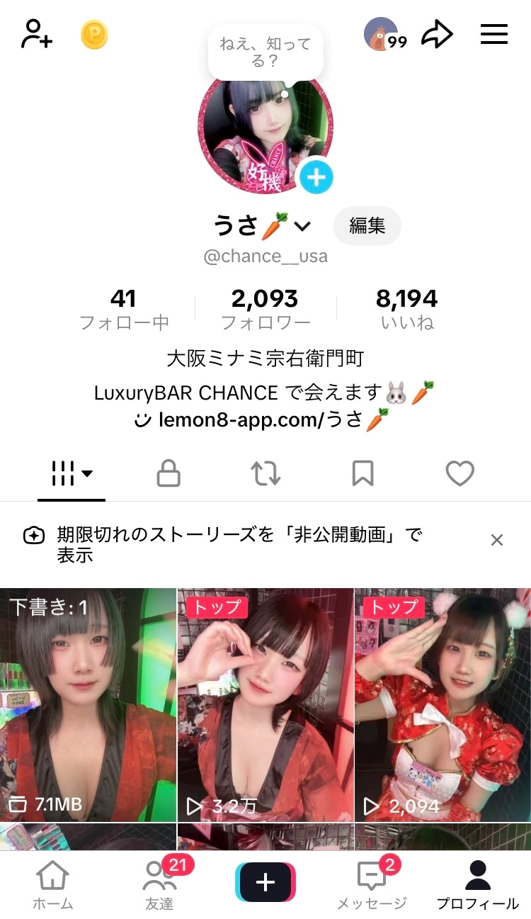 Tiktokᙏ̤̫⑅* - 👘うさ👘 - Luxury BAR CHANCE・チャンス - ミナミのガールズバー