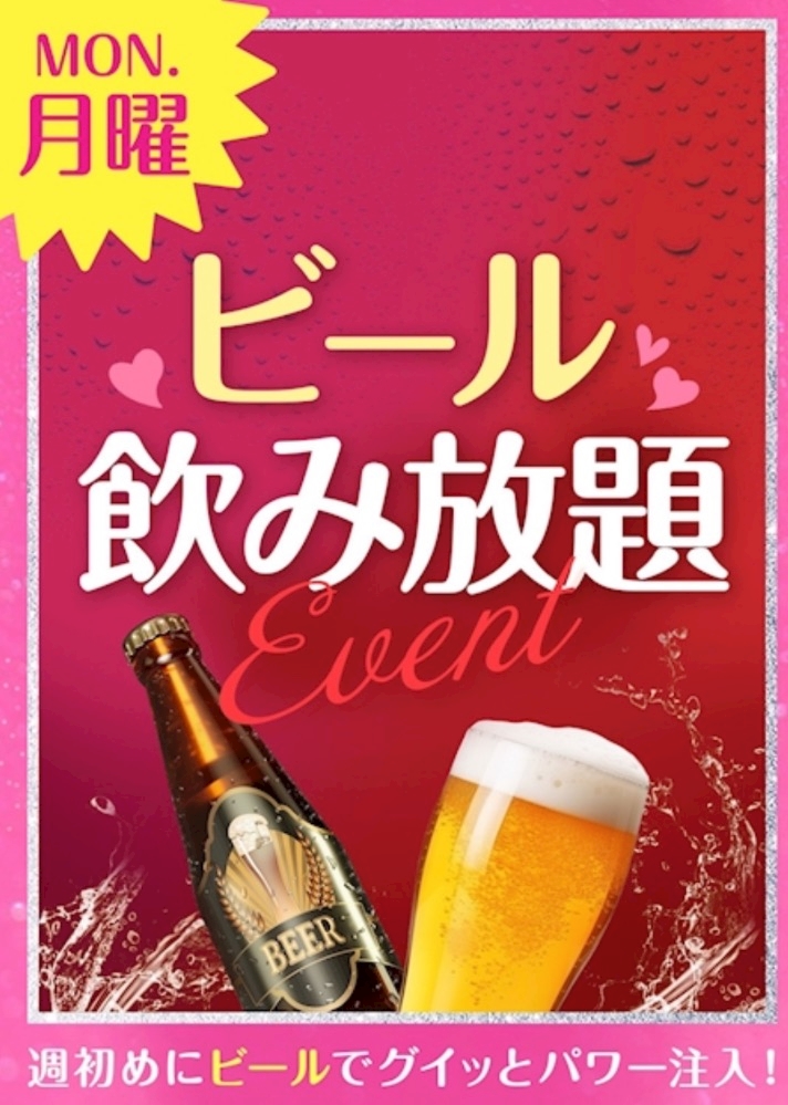 今日は月曜日なのでビール飲み放題🍺🍻