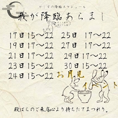 【月~金】 17:00~01:00 【土日祝】 15:00~01:00 |