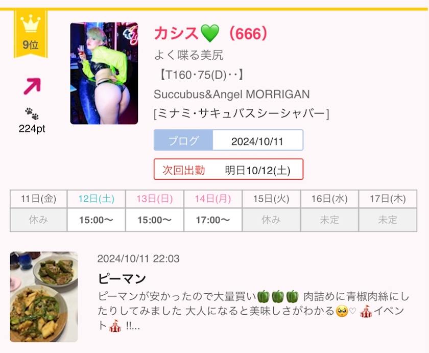 9位👑💕 - カシス💚 Succubus&Angel Morrigan - Succubus&Angel MORRIGAN・サキュバスアンドエンジェル モリガン - ミナミのコンカフェ