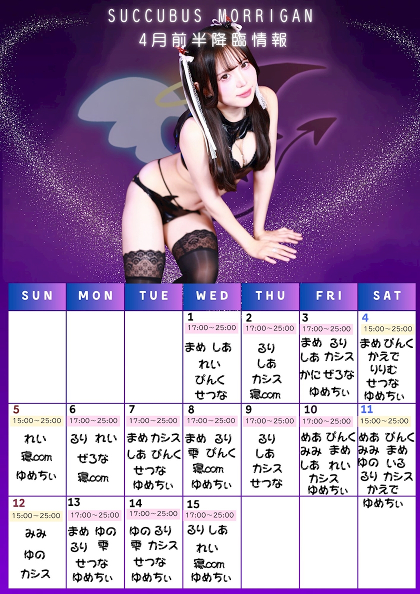 出勤時間.変更などは各サキュバスのページ・SNSアカウントをご確認ください