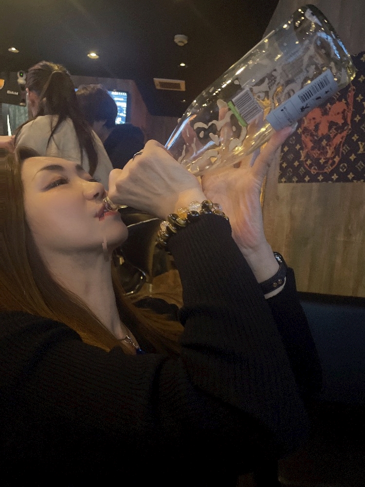残ったシャンパン、チーママに、ちょく瓶リクエスト🤗🤗🤗