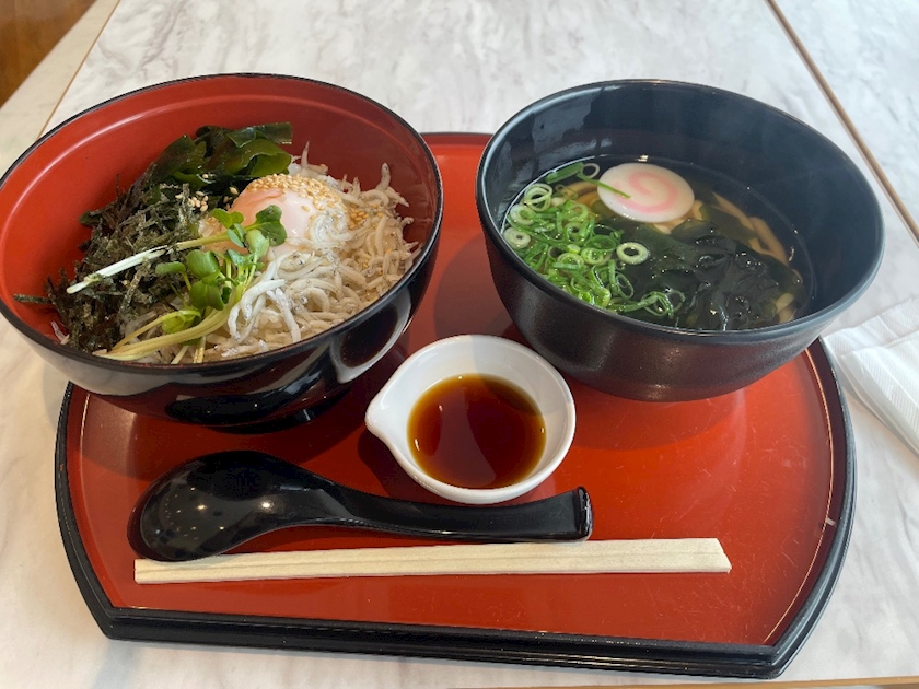 この前は、カレーうどん食べて、いまいちだったので、いつもの、しらす丼とうどんのセットにいたしましたよ😋😋😋