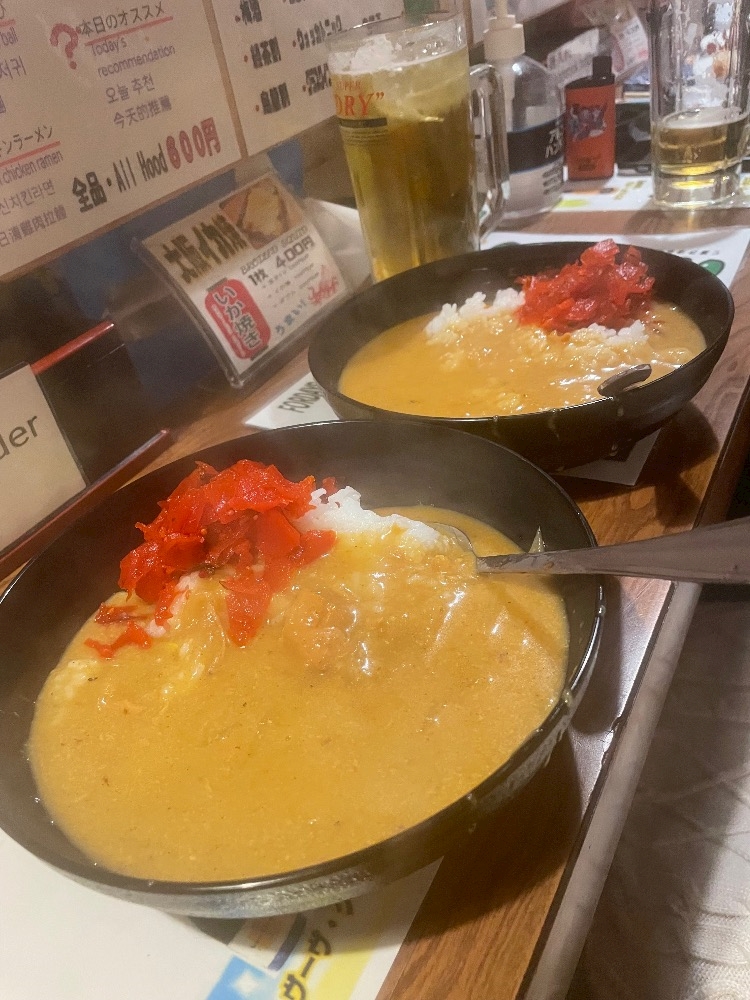 ひと口目は一瞬甘いのかと思いきや、スパイスが効きまくっておりまして、バーモントカレーが好きな私にはハードル高かったです🫠🫠🫠