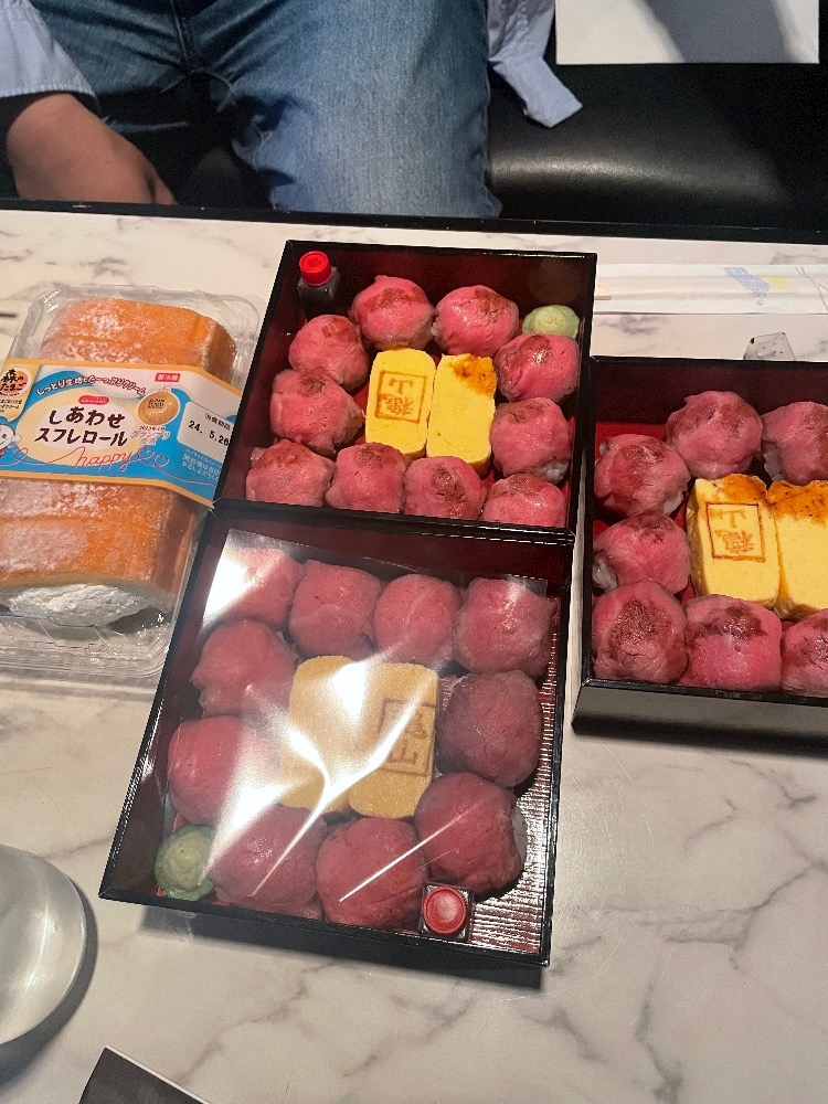 めっちゃ美味しい肉巻き寿司のお土産に、シャンパンまでありがとうございました😃😃😃
