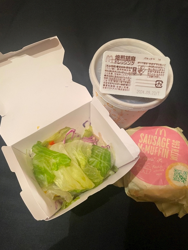 初めて食べた、マクドのサラダ、めっちゃ冷えてて、ドレッシングも、最高、シャキシャキレタス、ばり、旨かったです🌸🌸🌸
