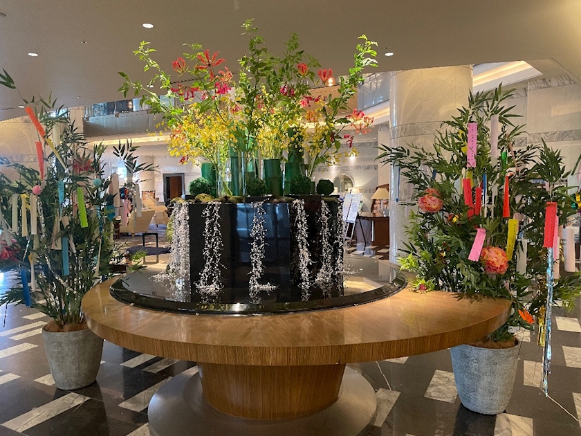 いつものホテルのロビーが、七夕になってました🌸🌸🌸
