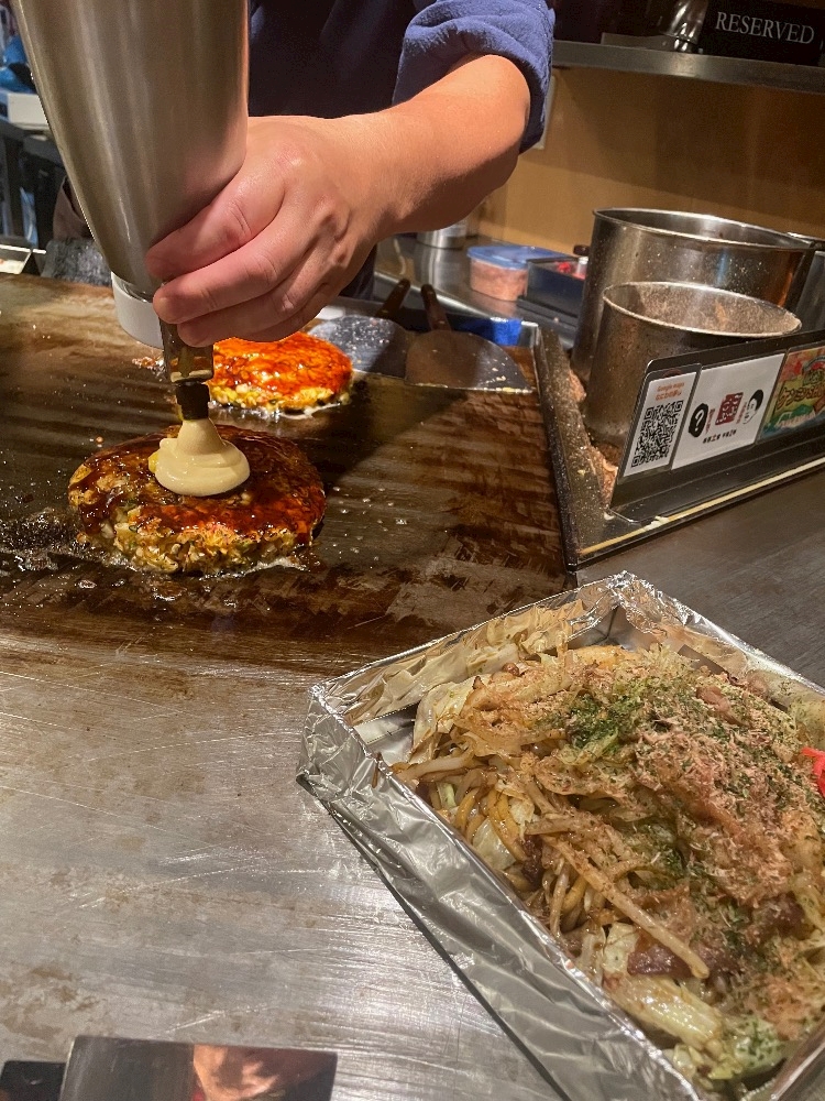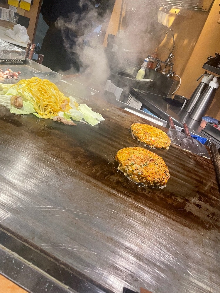 焼きそばと、お好み焼きを3人でわけわけして、食べました😋😋😋