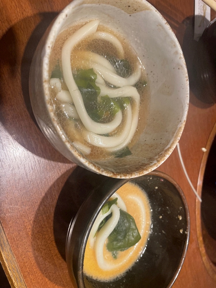 〆のうどん、間違えて、ゴマだれに、入れてしまった😱😱😱