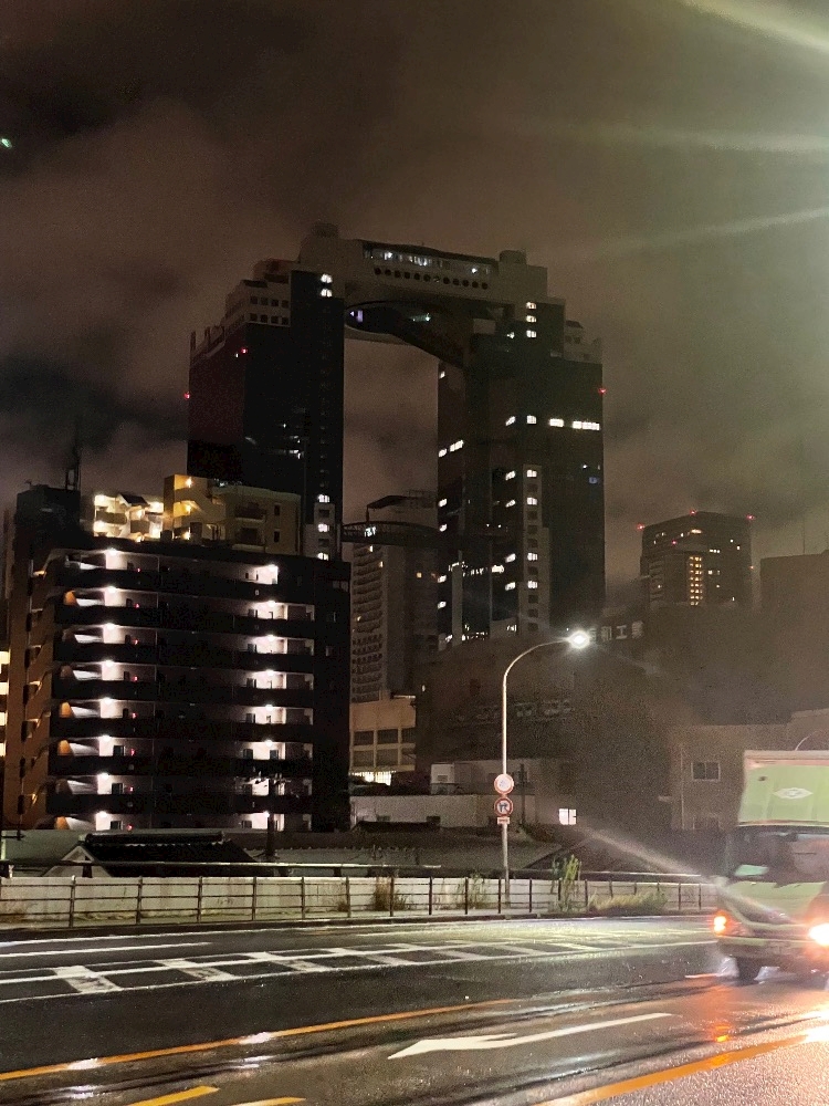 雨の夜のスカイビル、不気味でした😱😱😱